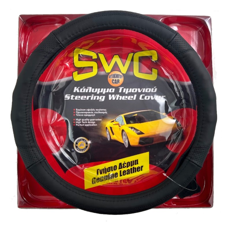 Κάλυμμα Τιμονιού Δερμάτινο 38cm Μαύρο
